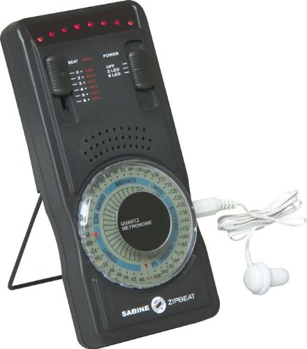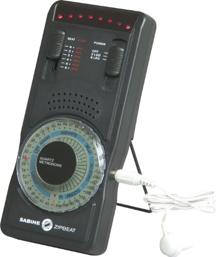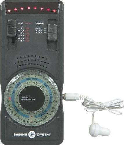 The Sabine Zipbeat Metronome delivers the accuracy of digital circuitry, the convenience of battery operation, a loud, clear, tone, a sweep LED, and full adjustability.The Zipbeat is one of the most powerful metronomes we've ever offered. You can adjust the speed from 40 to 208 BPM, with 2 to 6 accented downbeats per measure. You can adjust the speed from 40 to 208 BPM, with 2 to 6 accented downbeats per measure. There's also a built-in tone generator, adjustable from 440Hz to 445Hz. Includes a free earphone monitor and 9V battery.Sabine's new ZipBeat-6000 Digital Metronome offers you many valuable features previously available only in far more expensive metronomes.FeaturesLoud & Clear ToneAccented Downbeat from 2-6 beats per measureSpeed Adjusts from 40 to 208 beats per minute (or Largo to Presto)Sweep LED gives you visual cue; switch from 1 alternating LED's to 8 sweeping LED's6 - Setting Tone Generator for reference pitch (from A=440 to A=445 Hz)Stand for easy viewingThe ZipBeat-6000 Digital Metronome comes complete with a manufacturers Limited Two Year Warranty.