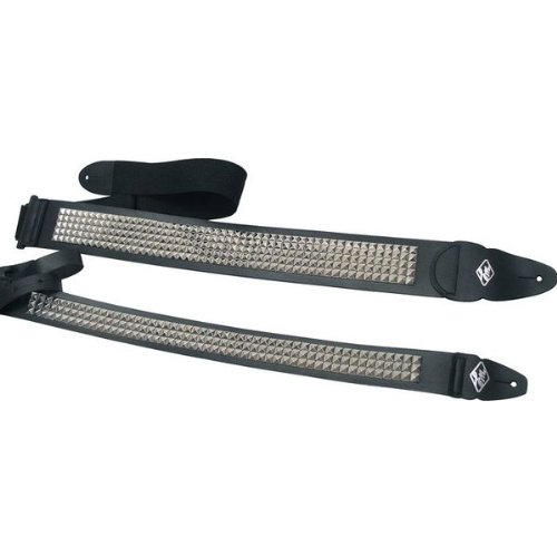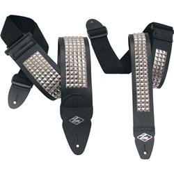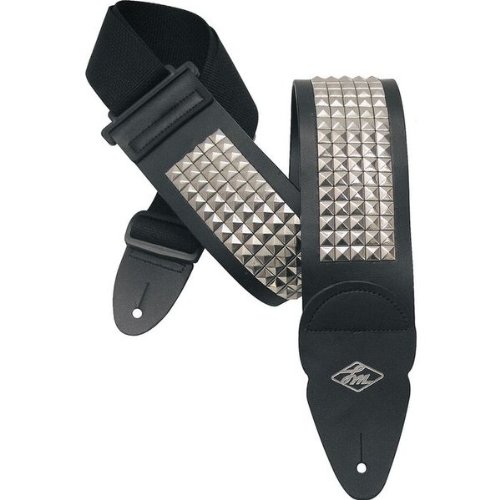 This Studded Guitar Strap is made of 1/4" heavy duty nylon with leather ends. 2" poly web section is easily adjustable.2"-wide version has 50 rows of 3 pyramid metal studs for plenty of attitude, while the 3"-wide version has 50 rows of 5 pyramid metal studs for even more.