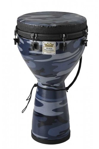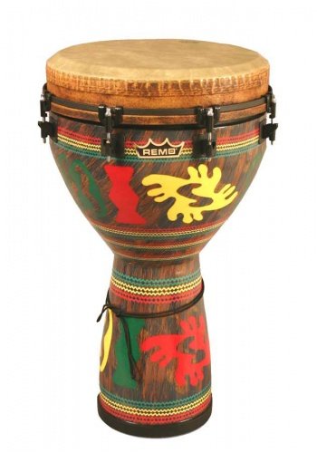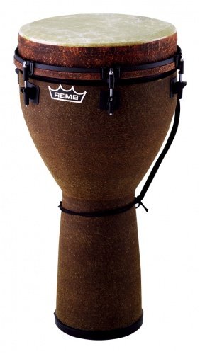 REMO Djembe Drums are the most popular of all of their World Percussion instruments.Key-tuned REMO djembes are as widely used by touring professionals as they are in drum circles. The high slaps and deep bass tones from all REMO Djembes are from the Type 2 FIBERSKYN 3 drumhead and ACOUSTICON shell. This 14-inch model featuers 8 lugs and an Earth-pattern FabriFinish covering.DjembeRemo djembes are based upon the traditional drums of the West African Mandingo people, originating from the great Mali Empire of the 13th and 14th century.Developed with the assistance of world-renowned Djembe players, Remo's key, rope, and cable-tuned Djembes feature superb sound quality, lightweight design, are easily tuned in any kind of weather, and always easy to play.These versatile instruments are then combined with Remo's modern advances including a Type 2 FIBERSKYN® 3 head on this drum key-tuned model.As the world's drumhead specialist for over 40 years, Remo, Inc. has developed an incredibly wide variety of drumheads at fit every drumming application. Not only is a full selection of Remo heads availabe to meet the diverse needs of drumset players in country, jazz, rock, pop, R&B, hip-hop, latin and every other style, Remo heads also bring advanced technologies and exceptional performance capabilities to the specialized needs to players in the marching, concert and world percussion areas. Indeed, with so many types, weights and sizes available, selecting the ideal head for any drum or situation requires an understanding of the performance levels that each head is designed to achieve.Remo Djembe Key-Tuned ArtistsLeon MobleyDa LionLeon began to play African drum rhythms in 1967 and studied for ten years with Nigerian master drummer Babatunde Olatunji at the Elma Lewis School of Fine Arts in Boston, Massachusetts. Leon has had theatrical training and appeared regularly on the PB