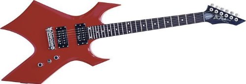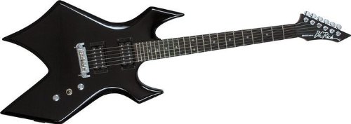 The Warlock features an aggressive body style, dual B.C. Rich humbucker pickups, and a 24-fret neck. The body is built from agathis wood, the neck is maple with a rosewood fingerboard, and all hardware is chrome, including the one-piece adjustable bridge.