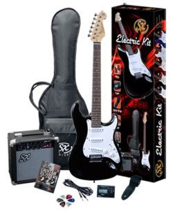 This Complete package includes the SX RST guitar - Features of the guitar are: RST Guitar: Perfect for many musical styles including rock, jazz, blues and Christian Dual cutaway solid Alder body allows access to the highest frets Die Chrome Tuners The body is contoured for hours of comfortable play Three single coil pickups, one volume and two tone controls plus a five way pickup selector switch create all of today?s great sounds Vintage fulcrum bridge with six adjustable saddles Truss rod adjustable Maple neck Rosewood fretboard, 22 jumbo frets Amp Features: 10 Watts of power through a specially design 5.5" speaker Master Volume Control Two Band EQ with Bass and Treble controls Headphone jack for quiet practice Weight of amp: 6.5lbs Overall dimentions: 9 3/4" wide x 10 5/8" high x 5" deep Other items: Guitar Tuner to help get your guitar in tune 10' instrument cable to connect your guitar to your amp EB400 Guitar Bag to protect your guitar when your not playing A Guitar Strap and Picks